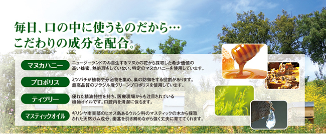 ネバつきを抑え、爽やかな清涼感で口臭を防ぎます。